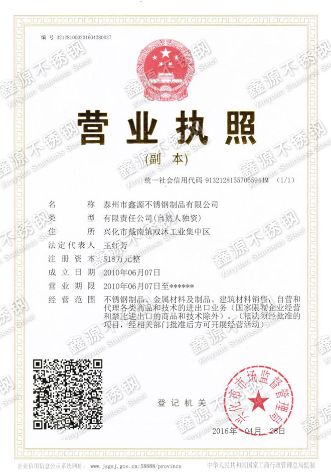 泰州市鑫源不銹鋼制品有限公司